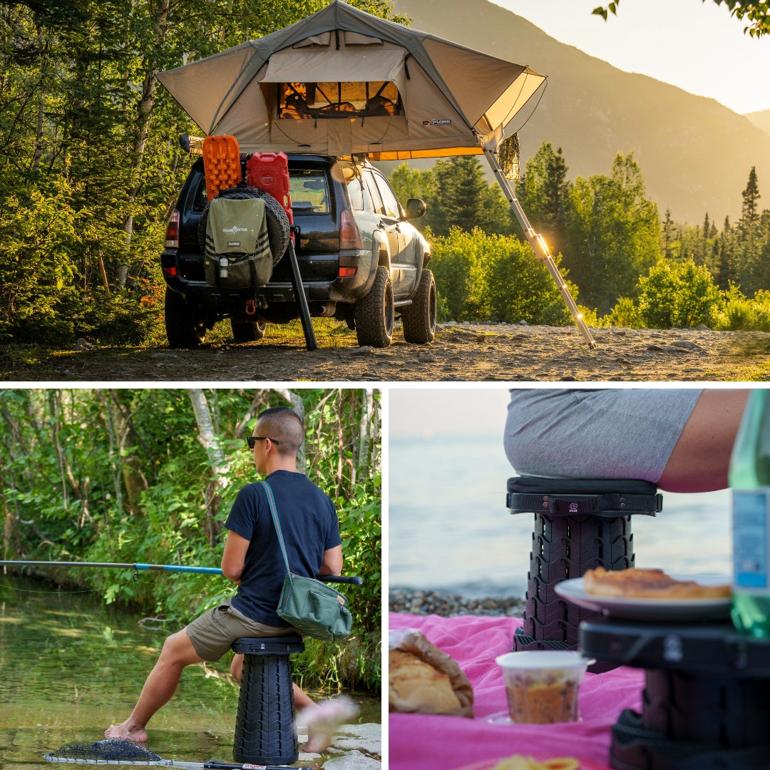 Le CLEVERSTOOL Square™ est le tabouret télescopique parfait pour toutes vos aventures en extérieur. Léger, compact et pratique, il vous accompagne partout où vous allez sans sacrifier le confort. Que ce soit pour les festivals, la pêche, la montagne ou les escapades en road trip, il est conçu pour vous offrir une assise confortable et stable.
